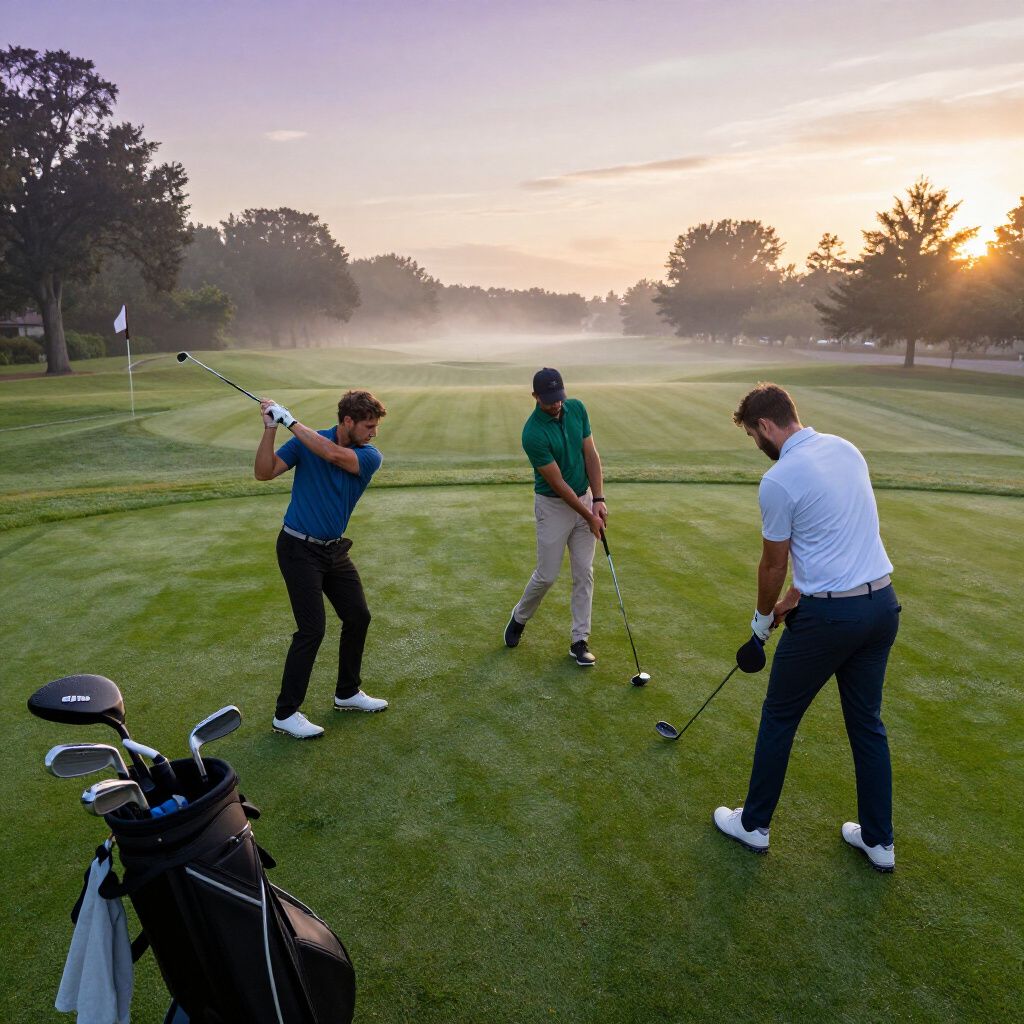 The day begins at 7:00 AM with a warm-up session on the driving range and putting green, allowing participants to prepare before the tournament starts.